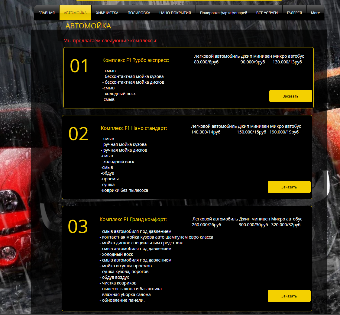 - трехфазная мойка кузова (бесконтактная, контактная, горячий воск)