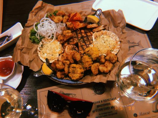 - Выбранную Вами рыбы и морепродукты (любой стейк, филе и морепродукты Вы можете выбрать прямо на охлаждаемой витрине) наши повара приготовят на гриле и подадут Вам в лучших традициях морских ресторанов