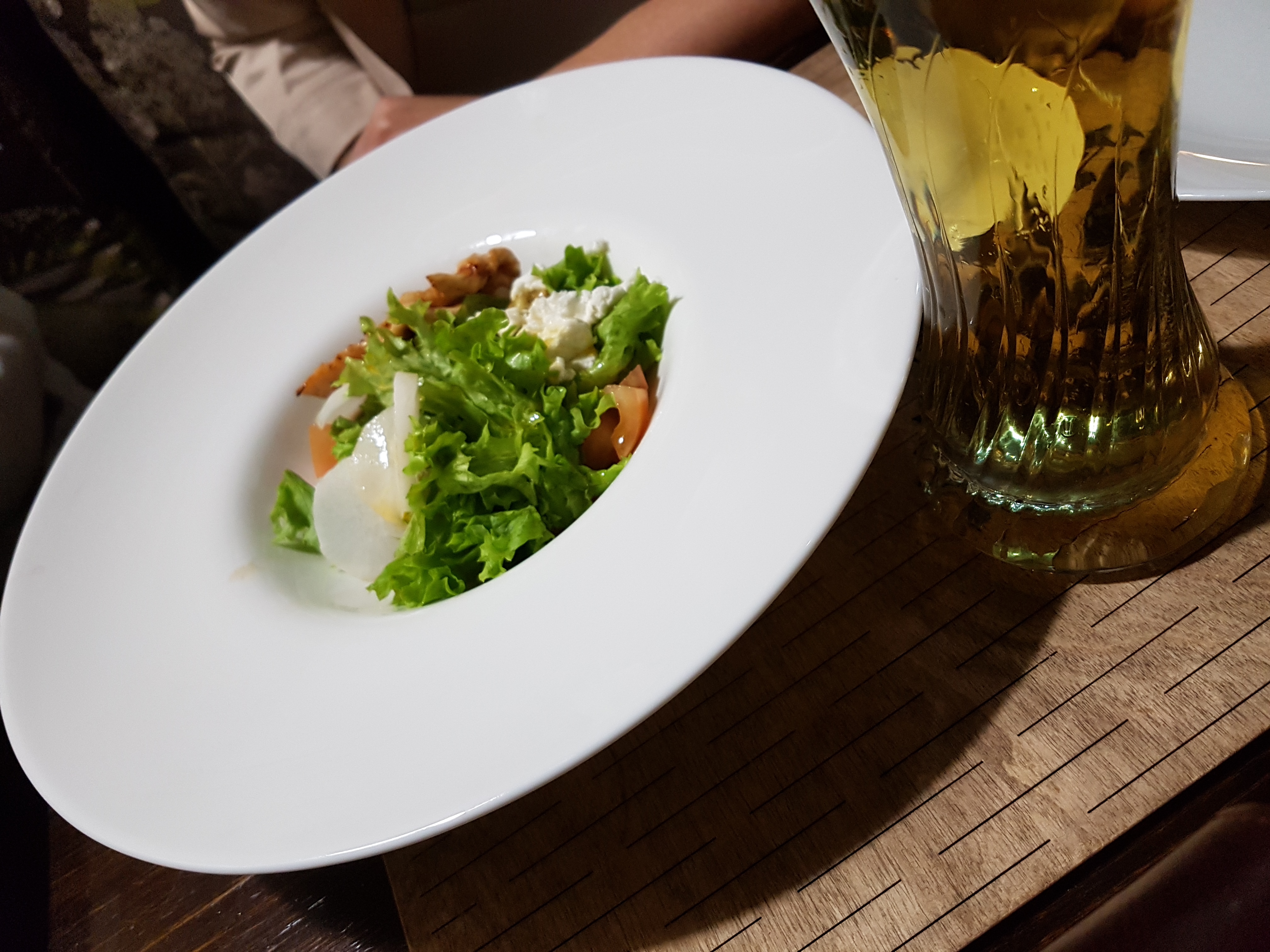 Салат в целом вкусный, хотя мясо немного пересолено, нехватала соуса для салата.)
