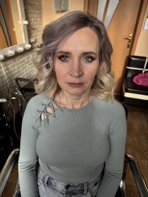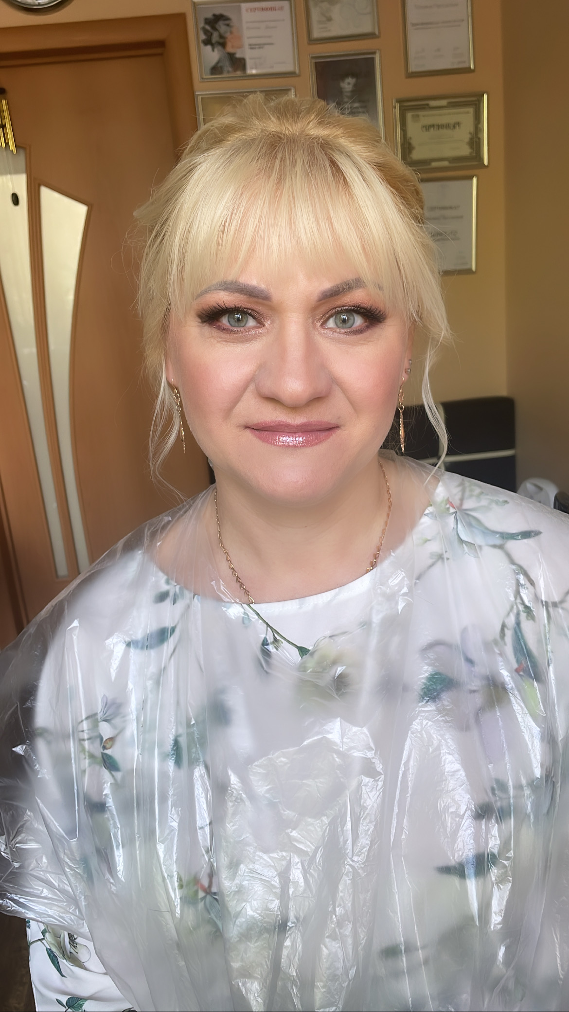 Причёска и макияж. До и после . Короткие волосы. Макияж без добавления ресничек.