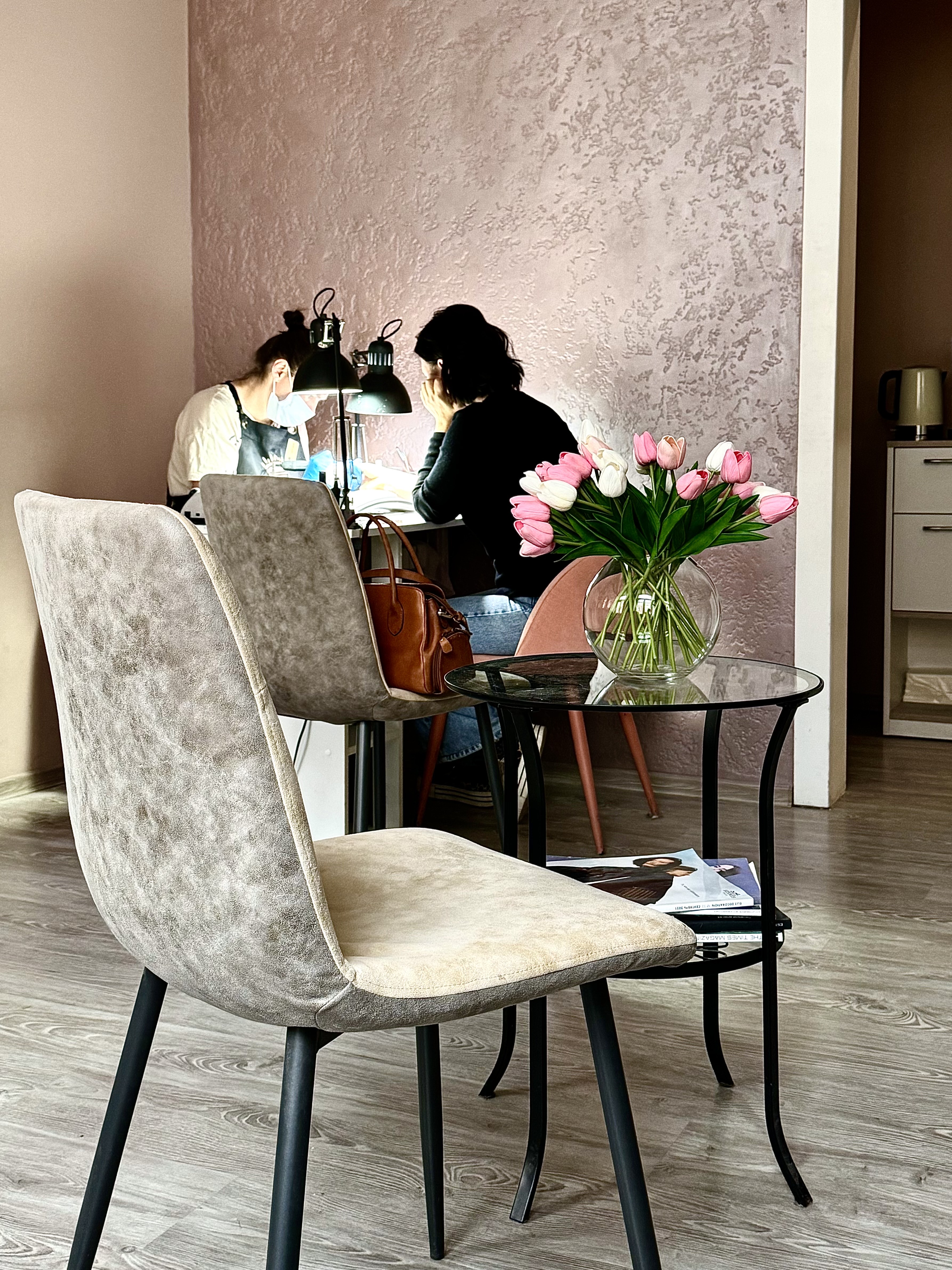 Какой классный салон, рядом с метро, приятный интерьер, удобные кресла, чисто, есть сухожар для обработки инструментов. Мастера очень дружелюбные и компетентные. Предлагают чай/кофе,если время позволяет, Татьяна сделала маникюр быстро, аккуратно и очень красиво, любуюсь уже несколько дней😻