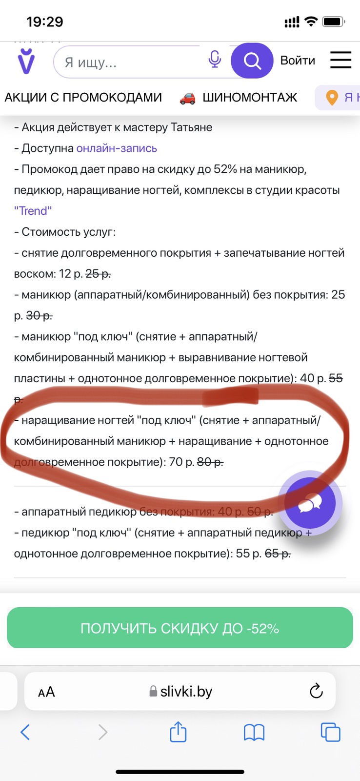 Приятная обстановка. Вежливое обслуживание. Делала маникюр и перманент (стрелки с растушевкой). Никаких нареканий. Качеством полностью довольна. Спасибо мастерам