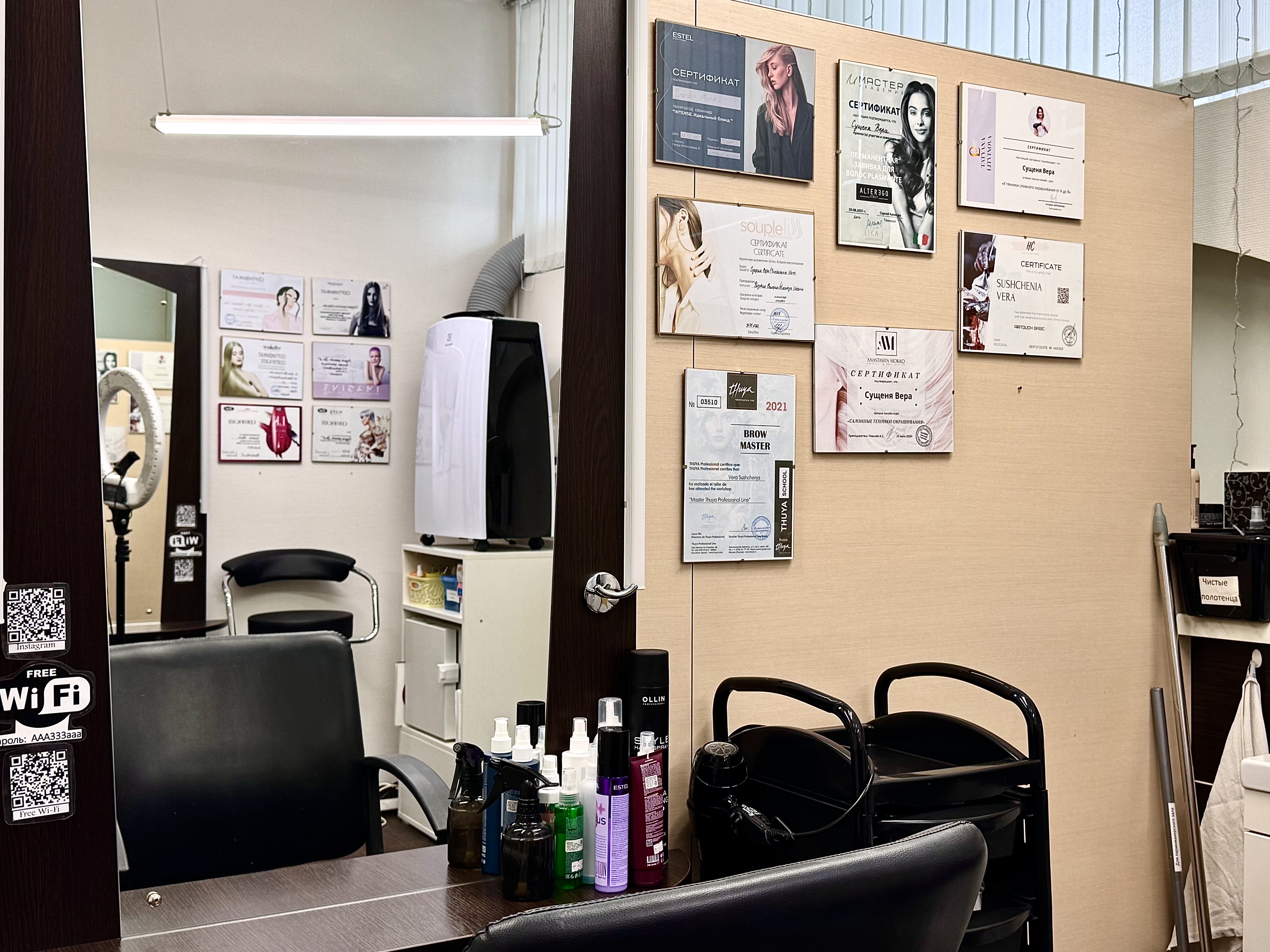 Приятный салон ,вежливый ,заботливый адмтнистратор .Чай,кофе .