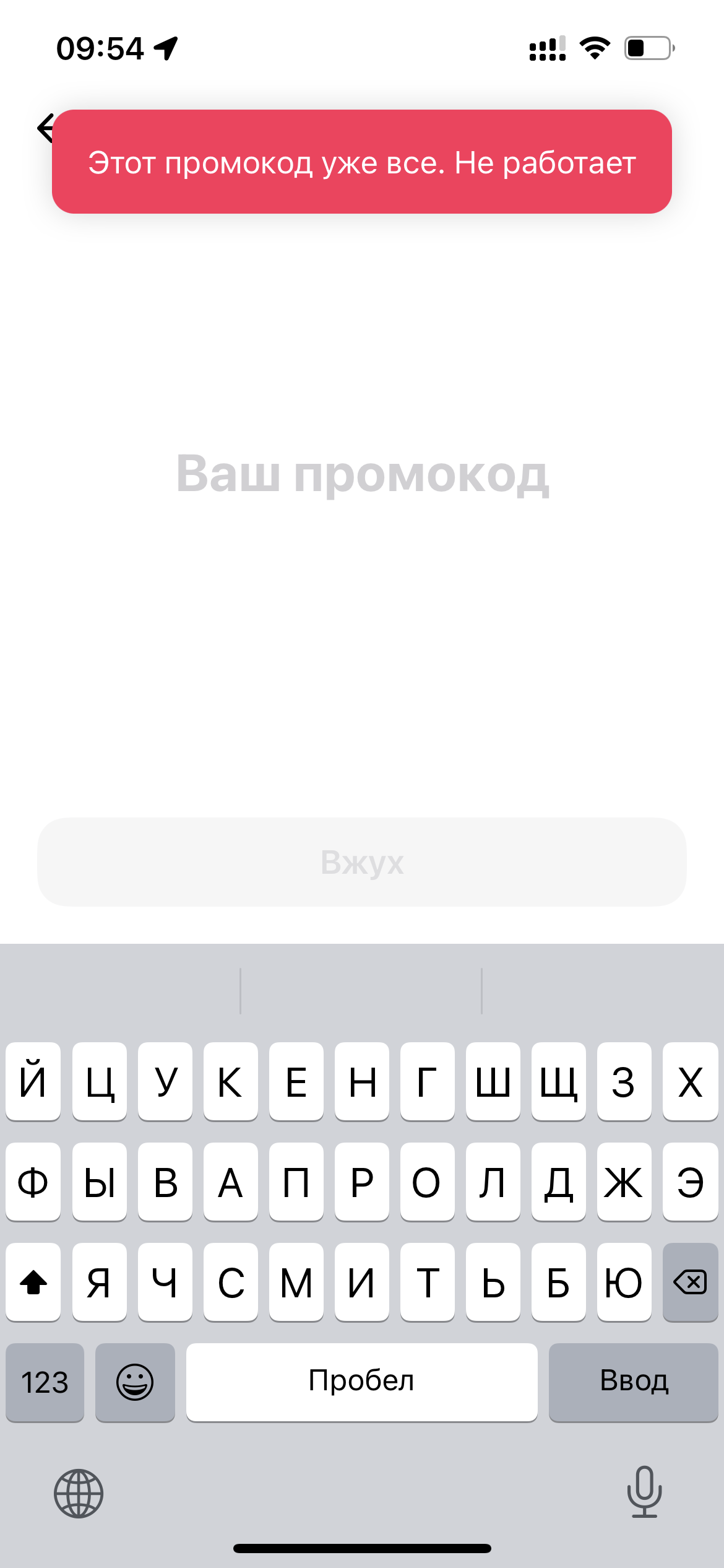 - Промокод вводится в приложении в боковое меню "Ввести промокод" полностью вместе с тире