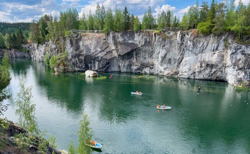 Прибытие в горный парк Рускеала (билеты оплачиваются в кассе самостоятельно), который будто создан для спокойного отдыха и прогулок вдоль отвесных каменных спусков, хотя появился как следствие выработки ценного камня. Здешним мрамором украшены Исаакиевский и Казанский соборы, Эрмитаж и Михайловский замок. Живописные мраморные скалы отражаются здесь в зеленоватой глади озер. Рускеала - это не только красивая природа, скалы, водоемы и карельский лес, но и памятник горному делу.