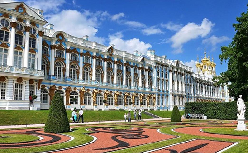 *Загородная экскурсия в Царское село. Посещение Екатерининского дворца, Янтарной комнаты и прогулка по парку. Екатерининский дворец - это бывший императорский дворец и один из крупнейших дворцово-парковых ансамблей в окрестностях Петербурга, построенный в начале 18 века. Во дворце вы сможете посмотреть копию знаменитой Янтарной комнаты. Также Вы услышите мифы и легенды о подлинной Янтарной комнате, которая не найдена до сих пор (покупка экскурсии осуществляется заранее в офисе компании либо при наличии свободных билетов в 1-й день по прибытии в Санкт-Петербург).