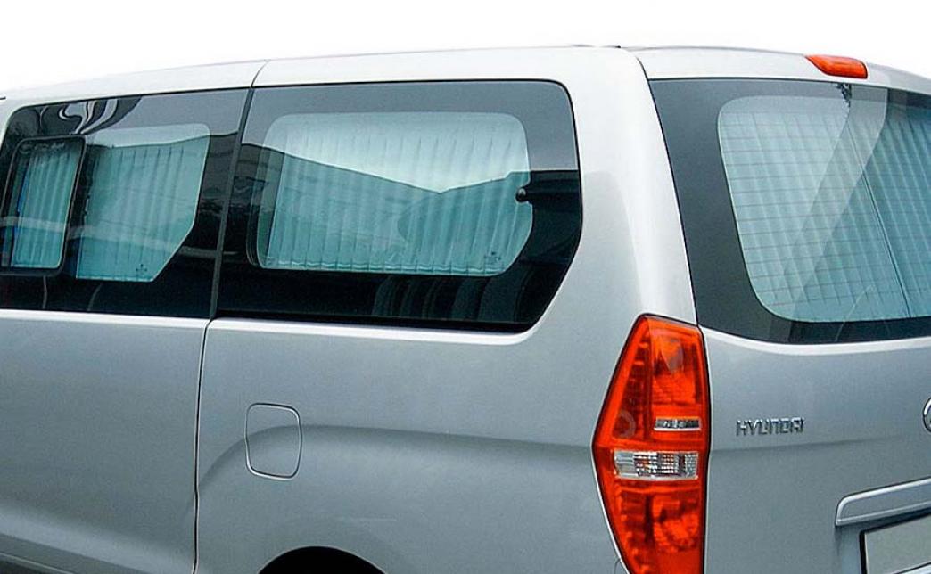 Материал шторок: перфорированная ткань черного цвета, возможен выбор материала, а также изготовление шторок из материала заказчика.