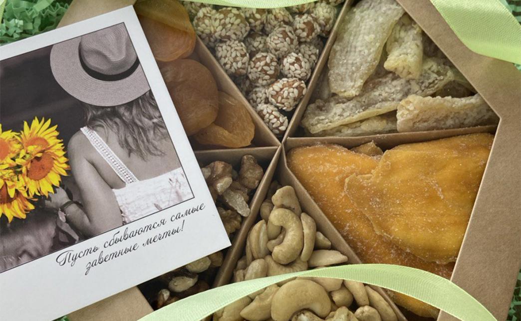 Состав: папайя, имбирь, фундук, ассорти фруктово-ореховое, рахат-лукум, арахис в сахаре