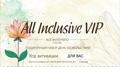 - "All Inclusivе VIP" (7 услуг включено):