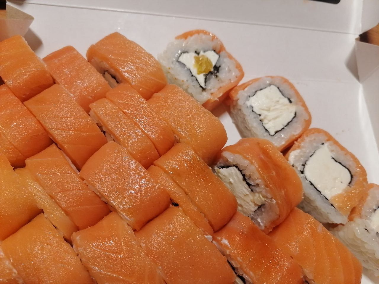 - рис, сливочный сыр, огурец , авокадо, форель, окунь, тунец