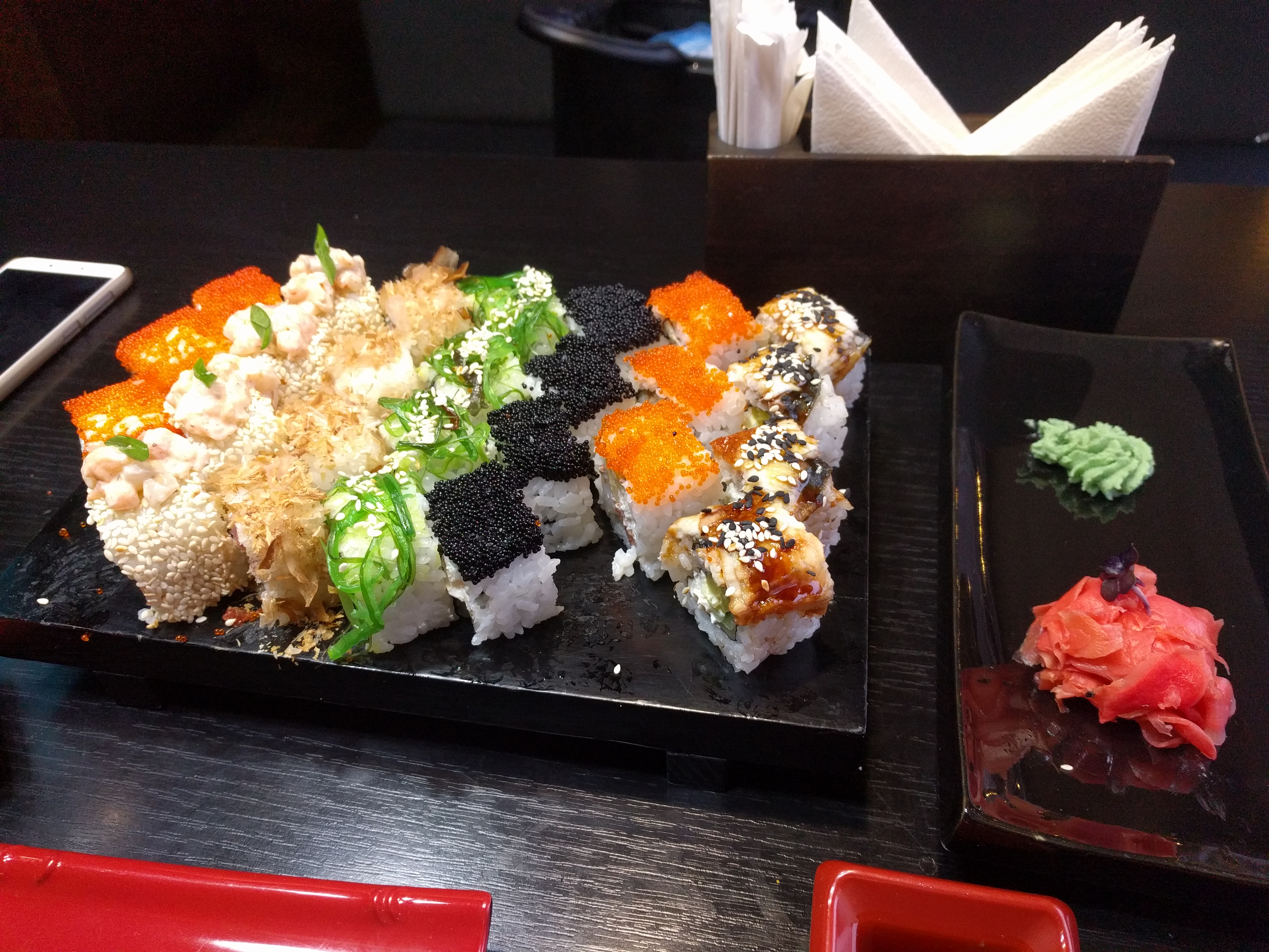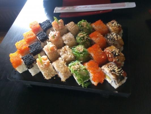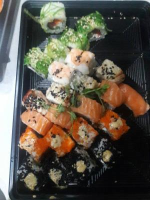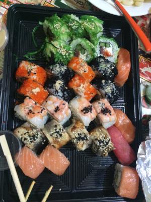 Брали сет 3XL. Рис хорош, теплые роллы были ещё немного теплыми.Ореховый соус совсем не тот и отдельные суши были невкусными.Можно брать когда лень готовить))) По времени привезли без опозданий все как и было оговорено!