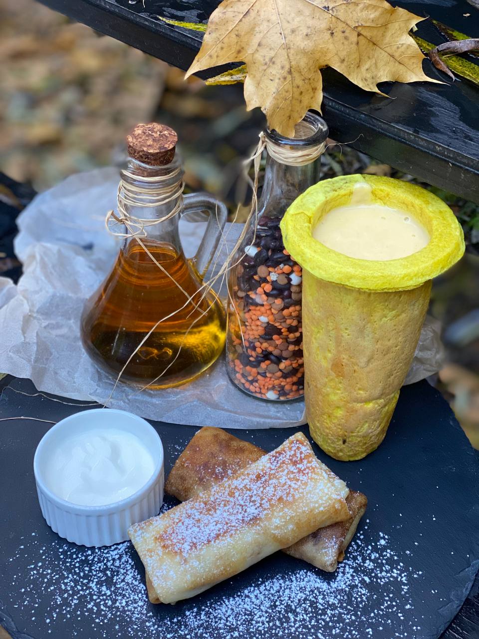 Блинчики: мука пшеничная, яйцо, масло растительное, молоко груша свежая, сахар, сыр маскарпоне, сметана