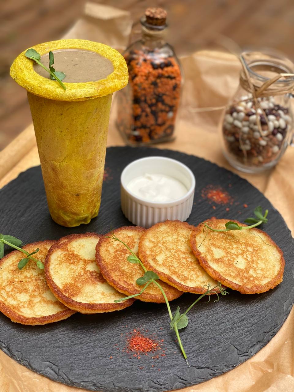 Крем-суп грибной + драники со сметаной (570 г)