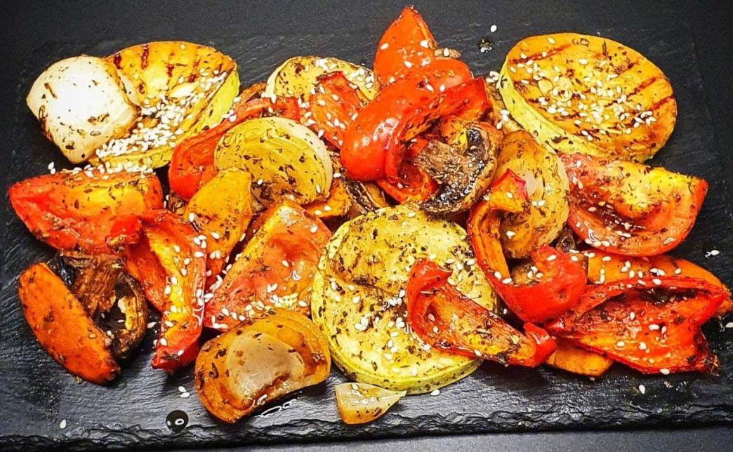 Состав: сладкий перец, кабачки цукини, шампиньоны, морковь, лук репчатый, мед, кунжут
