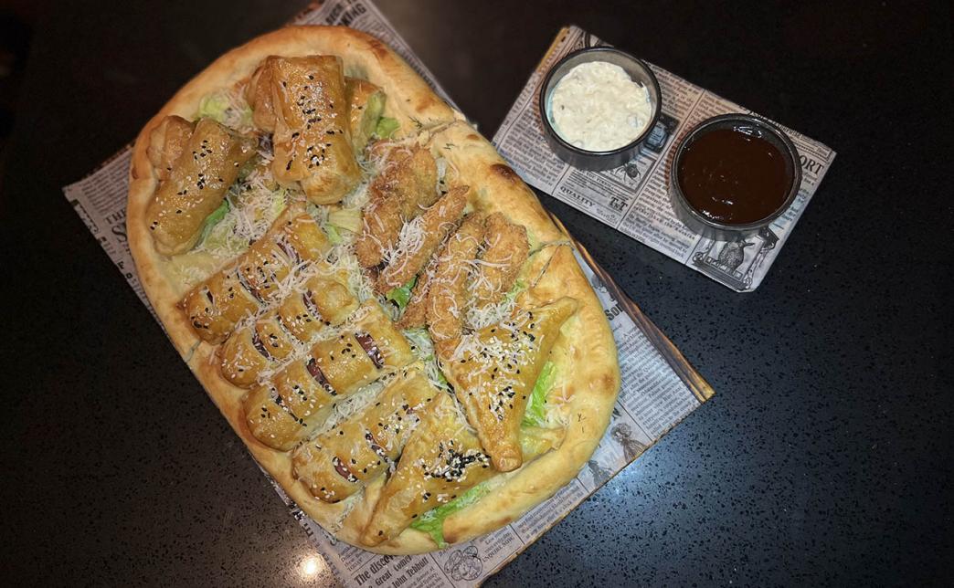 - пицца римская: тесто для пиццы, микс-салат, соус цезарь