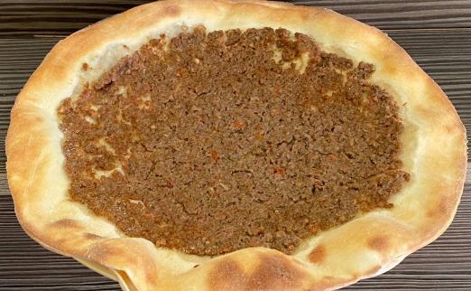 - двойная сфиха с мясом (260 г): тесто, фарш говяжий, лук , помидор, сладкий перец, кориандр, гранатовый соус, чеснок, соль, перец, петрушка - 2 шт.