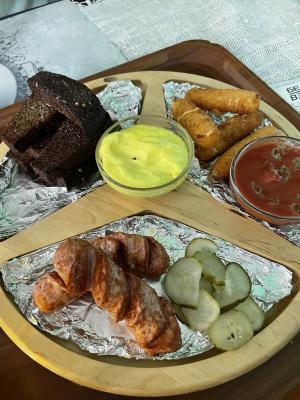 - Сет №6 (2 жареные сосиски + чесночные гренки + сырные палочки + бокал пенного напитка): 16 р. 26,30 р.