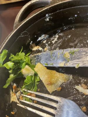 - Тар тар из говядины с копченым соусом, пармезаном и тартильей: тар тар (говядина, каперсы, лук, огурец маринованный, перец халапеньо) из говядины, соус копченый из шпрот, сыр пармезан, тартилья