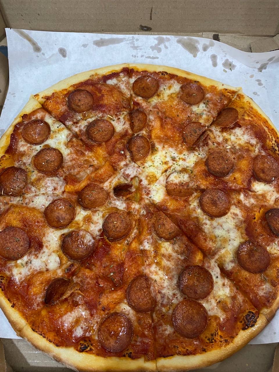 - пицца "Пепперони" (32 см, 530 г,): тонкое тесто, пепперони, сыр моцарелла, пицца соус