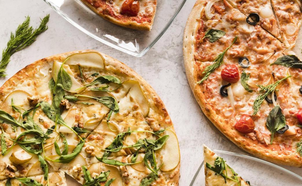 - пицца "Фирменная Жульен" (32 см, 650 г): тонкое тесто, куриное филе, грибы шампиньоны, лук, белый пицца соус, сыр моцарелла