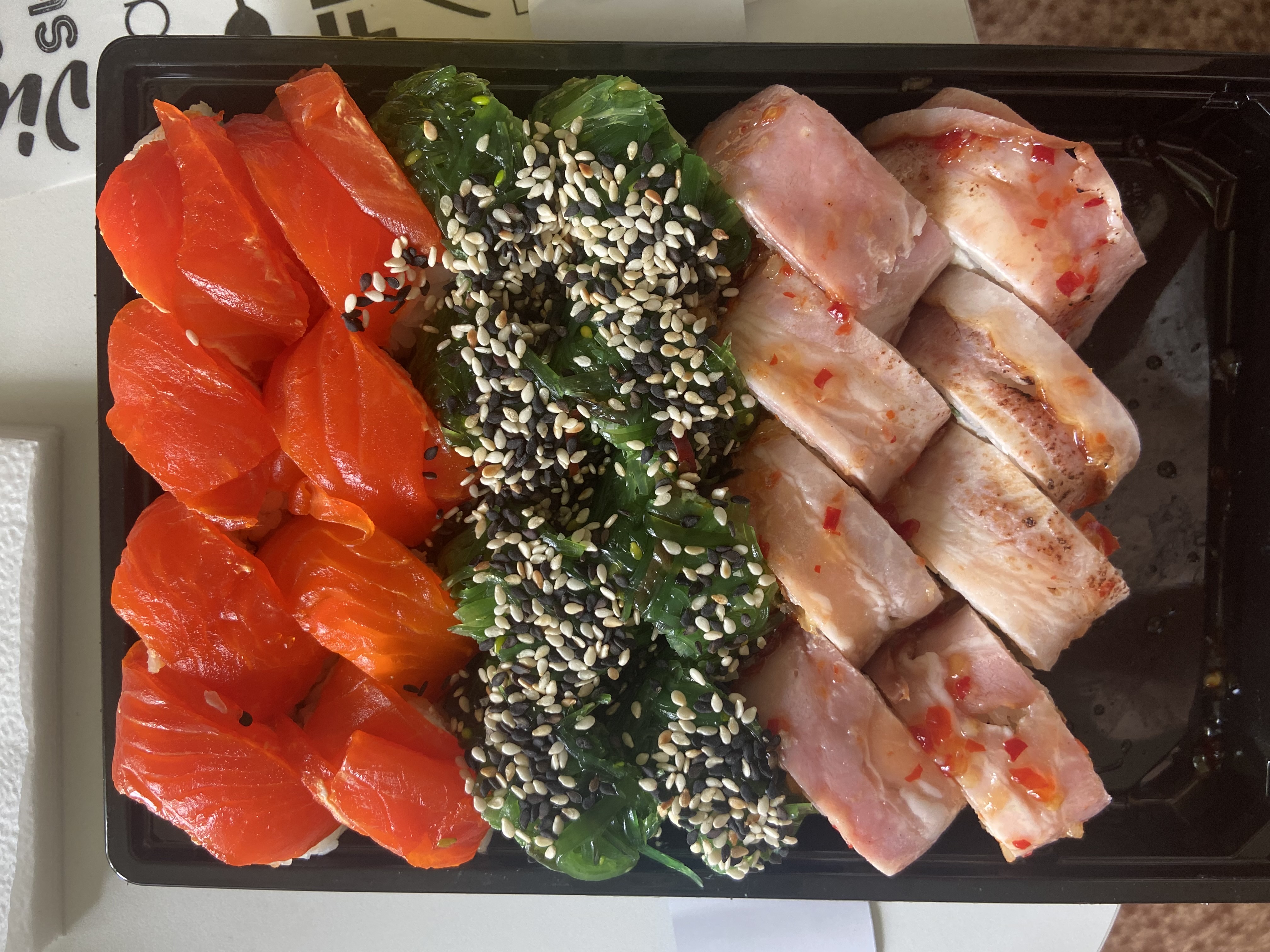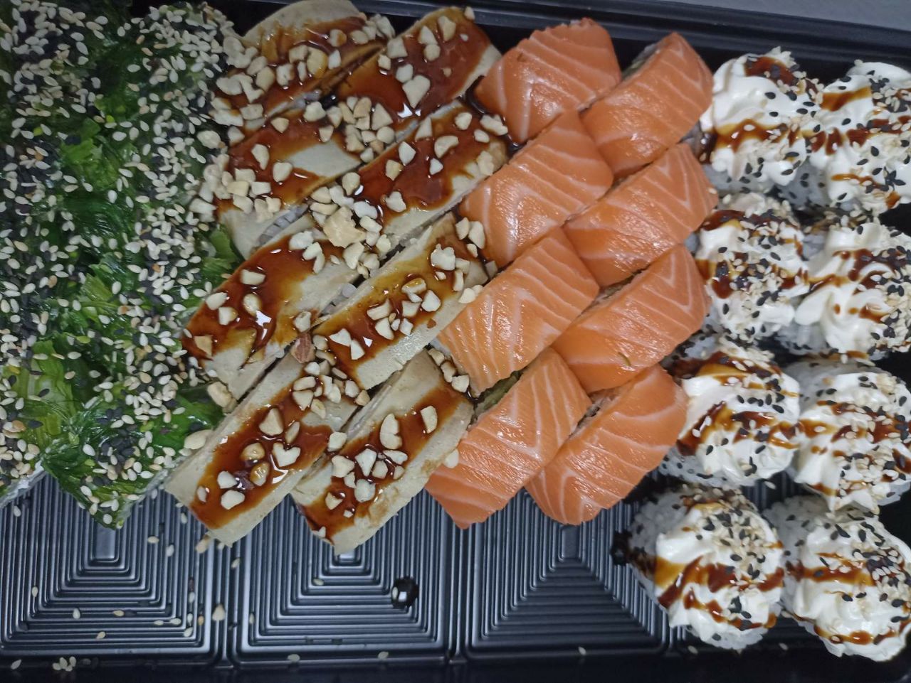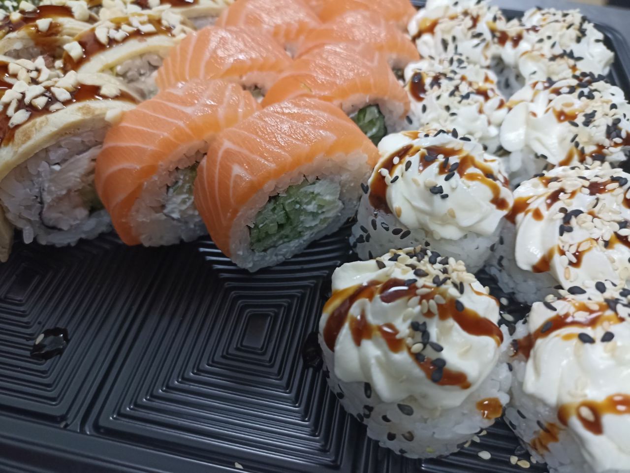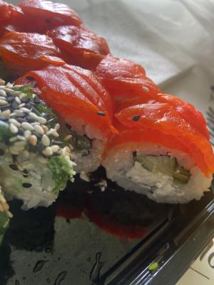 Вкуснятина невероятная! Роллы такие красивые, аккуратные, рыба свежак, качество высокое! 😋🤩 ещё и доставили без опозданий и быстро. Понравилось очень и обязательно закажу ещё!