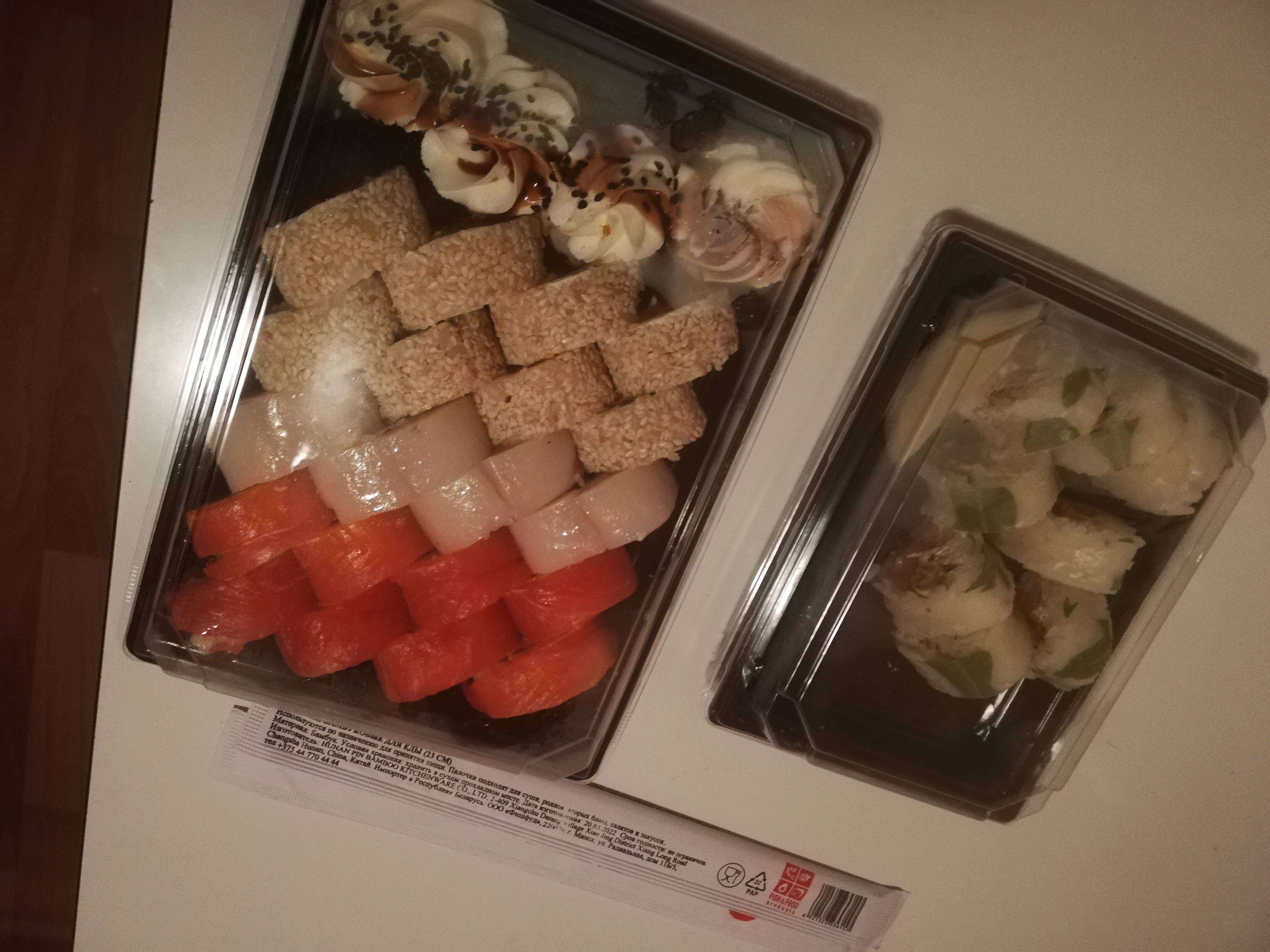 Суши балдеж, просто вкуснятина 😋 очень нежные, рыбка свежайшая! А внешне так просто красота - аж жалко есть 😁 Очень понравились)) спасибо! Продолжайте в том же духе!