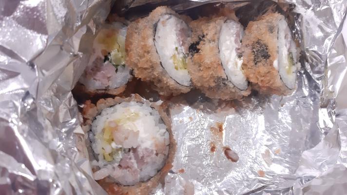 - ролл "Темпура с тунцом" (тунец, такуан, салат айсберг, сыр, нори, рис, темпура) - 8 шт