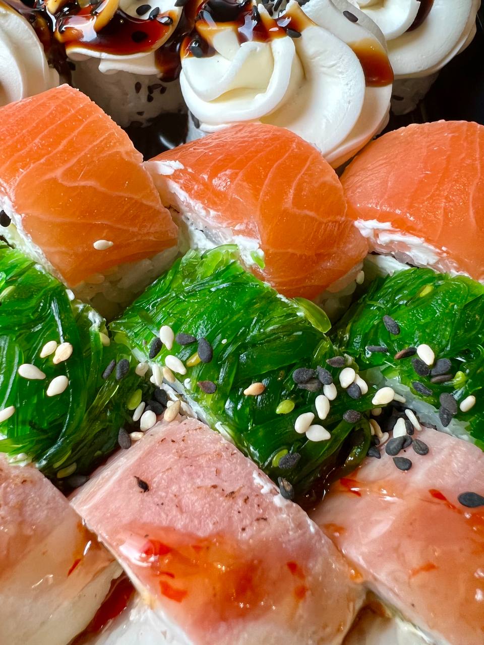 Суши просто идеальные 👀 ну очень вкусно! Большие, рис приятный, сыра и рыбы много. Доставили вовремя без опозданий