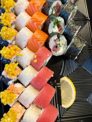 Суши как всегда бомба! Хотелось бы отметить очень приятный персонал заведения,заказывала на самовывоз,попала под дождь,очень сильно промокла,сотрудники предложили горячий чай,плед,это было очень приятно. Спасибо за ваше отношение и за замечательно вкусную еду,очень рада что нашла ваше заведение❤️😇