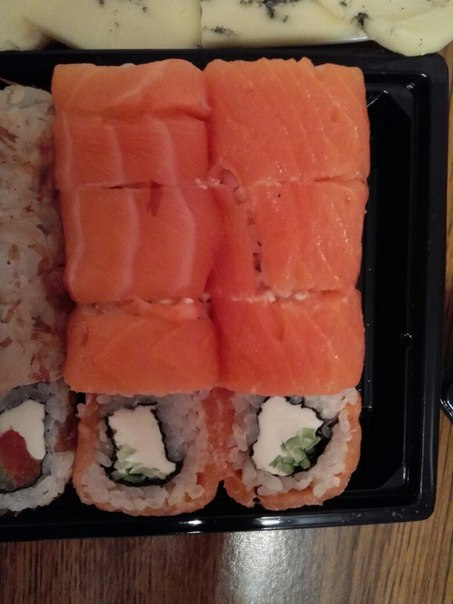 Все вкусно, доставка быстрая, заказывали сырный сет. Но почему-то рыба везде копченая(