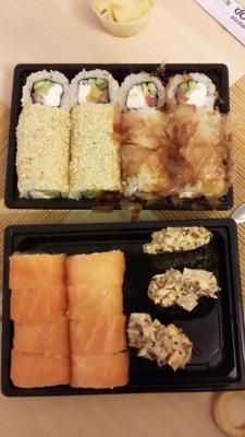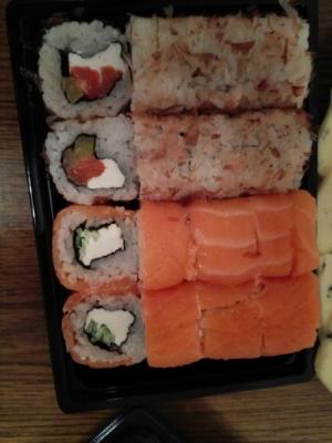 Рис суховат,сыра хотелось бы побольше и рыбу немного посочнее. Есть можно, но повторно заказывать не хочется.
