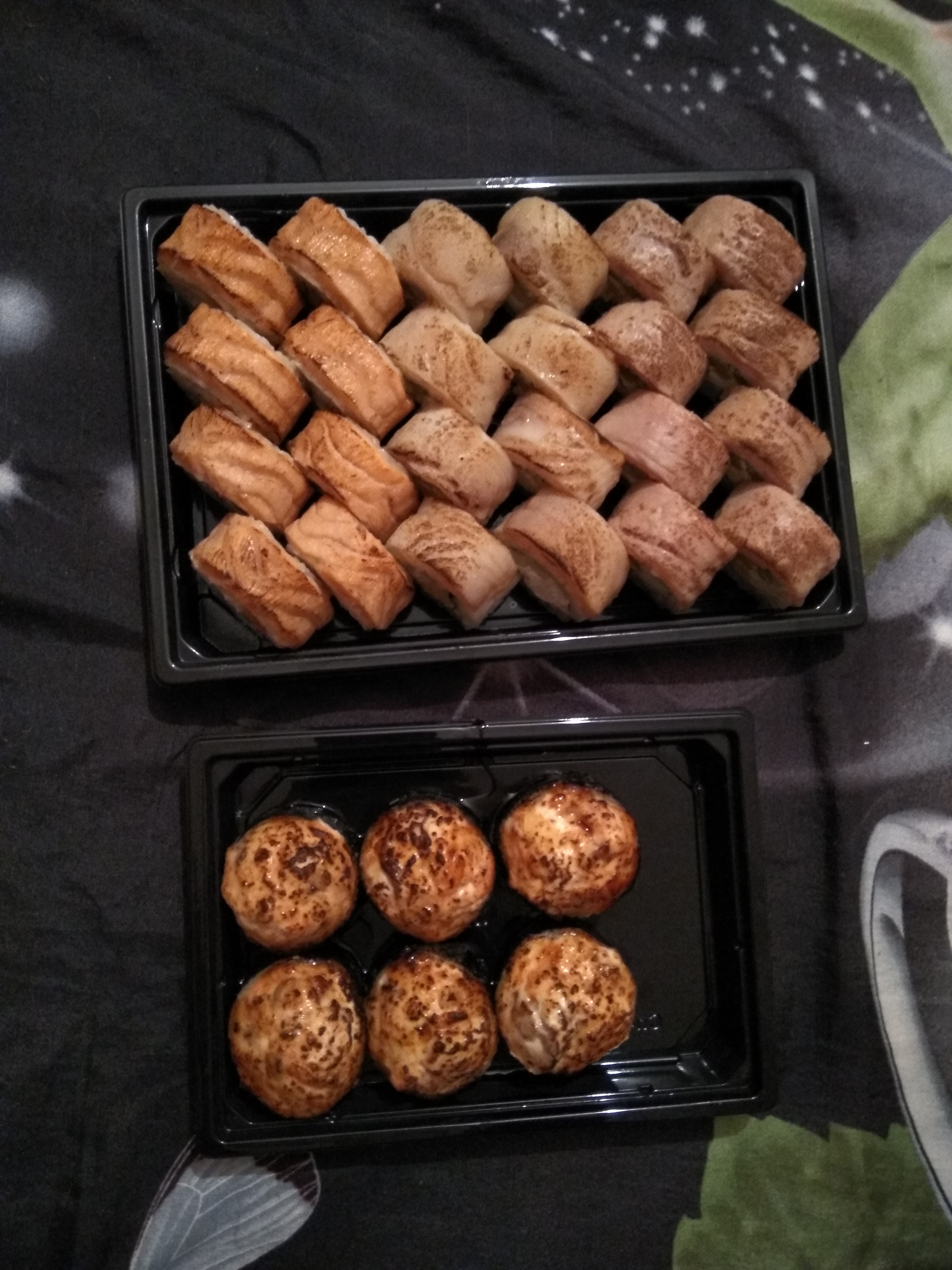 Спасибо за суши🙂 Доставка любит опаздывать. Заказывали у Вас не раз. Суши нормас, рис грубоват немного. В целом хорошо, но до 5звезд недотягиваете.