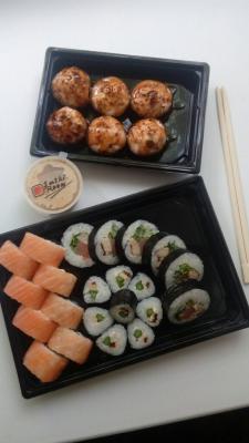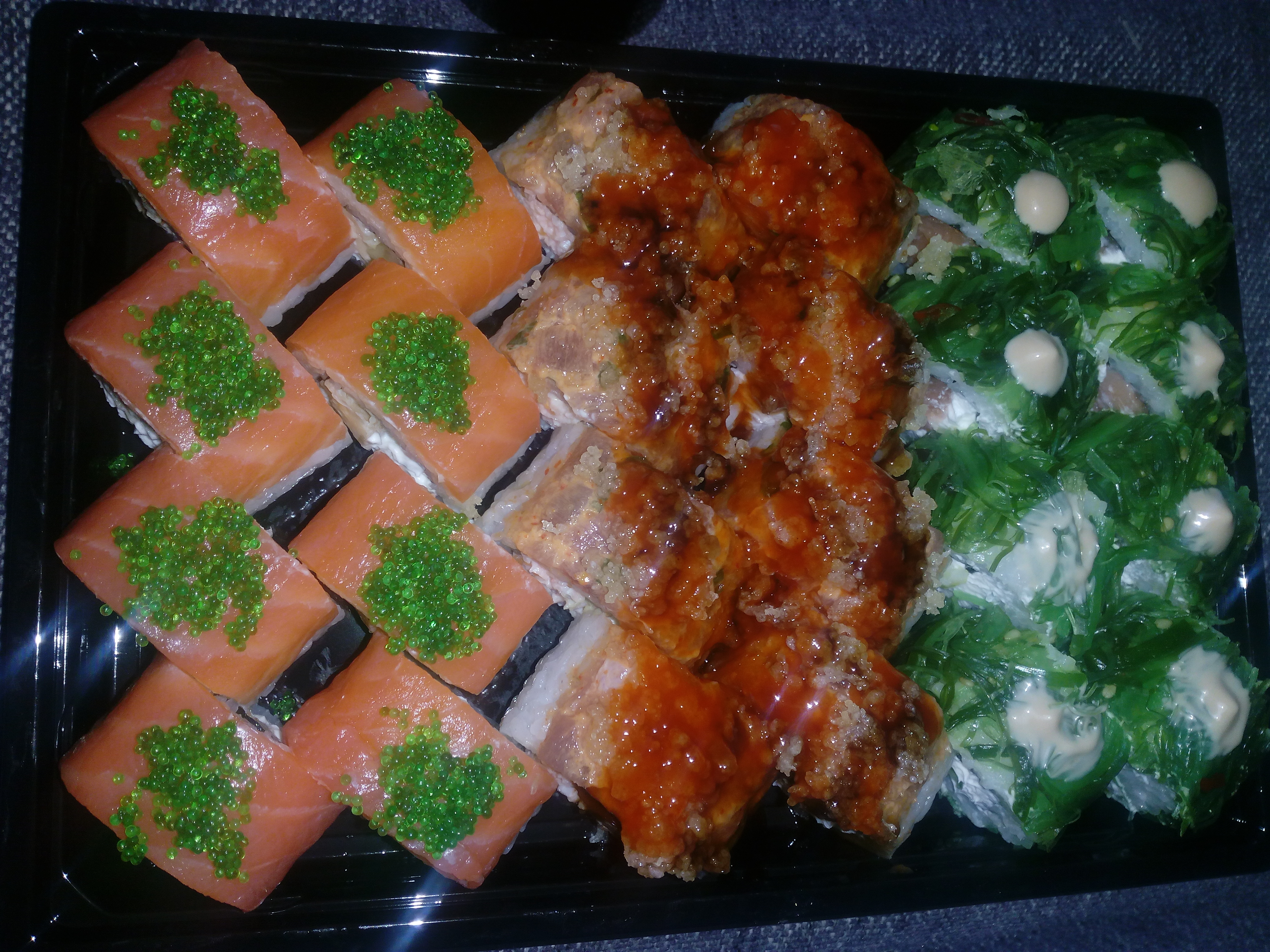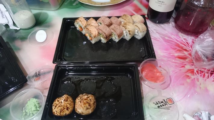 Суши понравились, большие, соотношение начинки и риса хорошее. Единственное что сделал заказ на промежуток времени с 18.30 до 19.00, а привезли в 18.10, хорошо что я уже был дома, но даже не успел снять обувь...