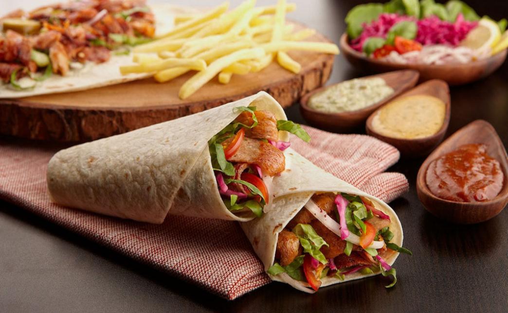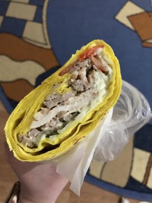 - шаурма средняя (450 г) - лаваш, курица гриль, соус чесночный, томат, огурец маринованный, капуста