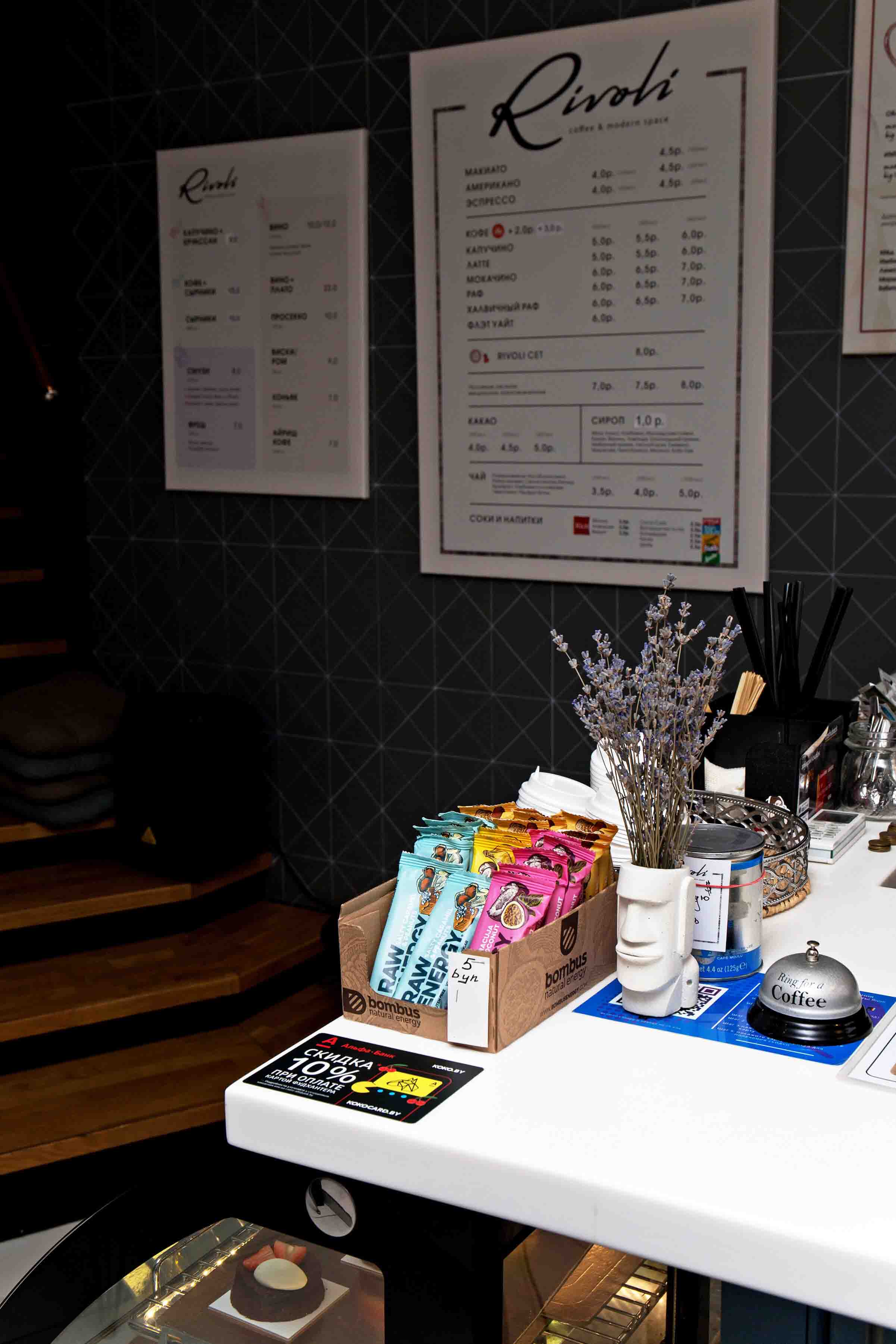 Атмосферное кафе "Rivoli" в центре Минска от сети магазинов бренда Pizhon - это европейская концепция, совмещающая в себе кофейню и творчество. На первом этаже располагаются барные стойки. На втором этаже, помимо посадочных мест, функционирует ателье бренда Pizhon. Кафе Rivoli - это пространство, где человек может выпить чашечку кофе, вдохновиться стилем и зарядиться положительными эмоциями.