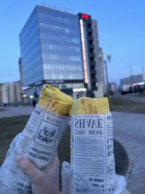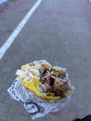 Брали 2 Кинга в переходе Кунцевщина. Шаурма одна из самых вкусных за последнее время, не смотря на большие очереди с акцией, парни сделали не только оперативно, но и очень вкусно! Тот пример, когда устраивают акцию и после хочется вернуться и покупать постоянно. Начинка состояла именно из мяса и других ингредиентов, а не просто пол шаурмы из капусты)