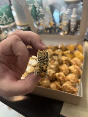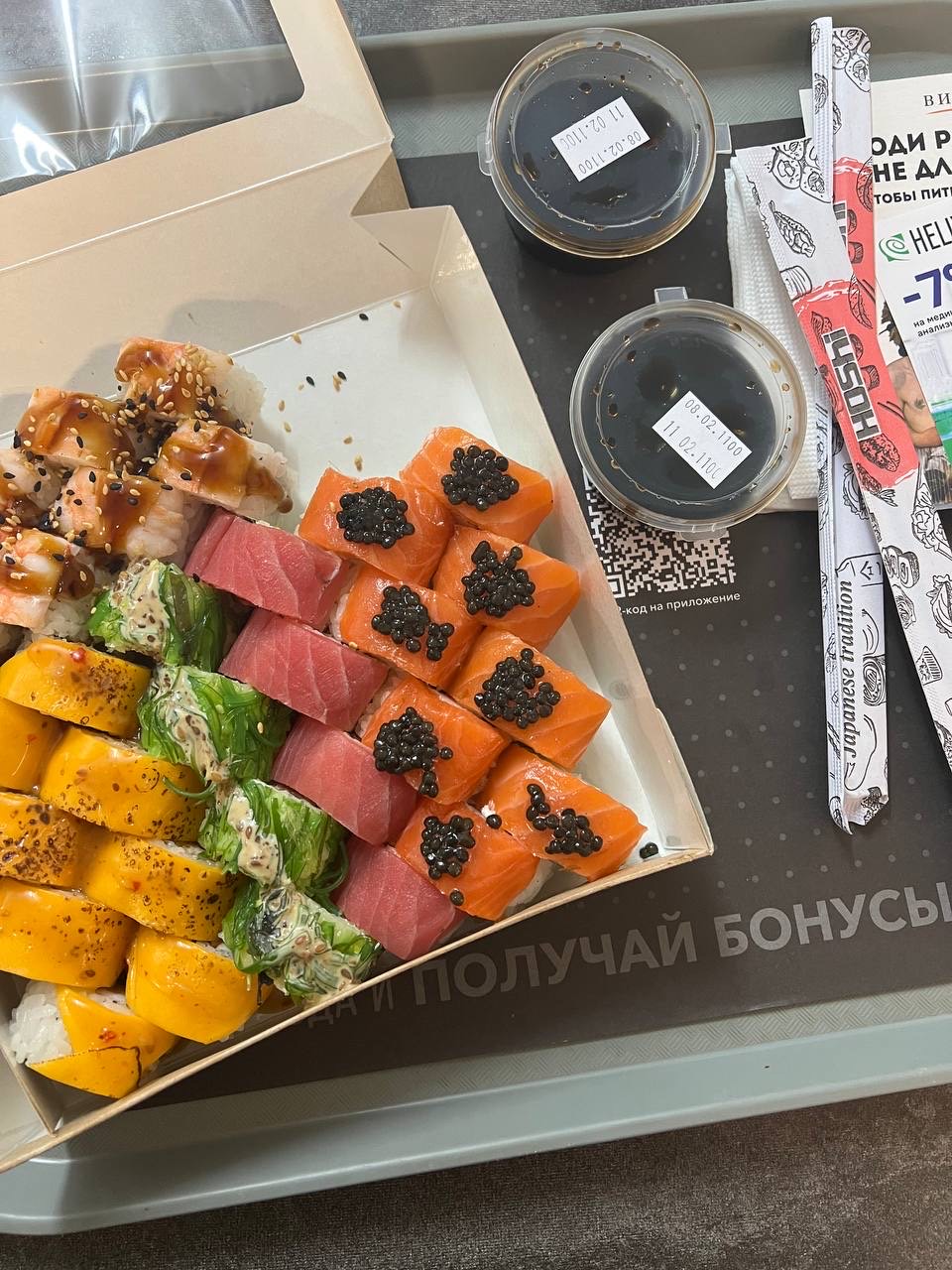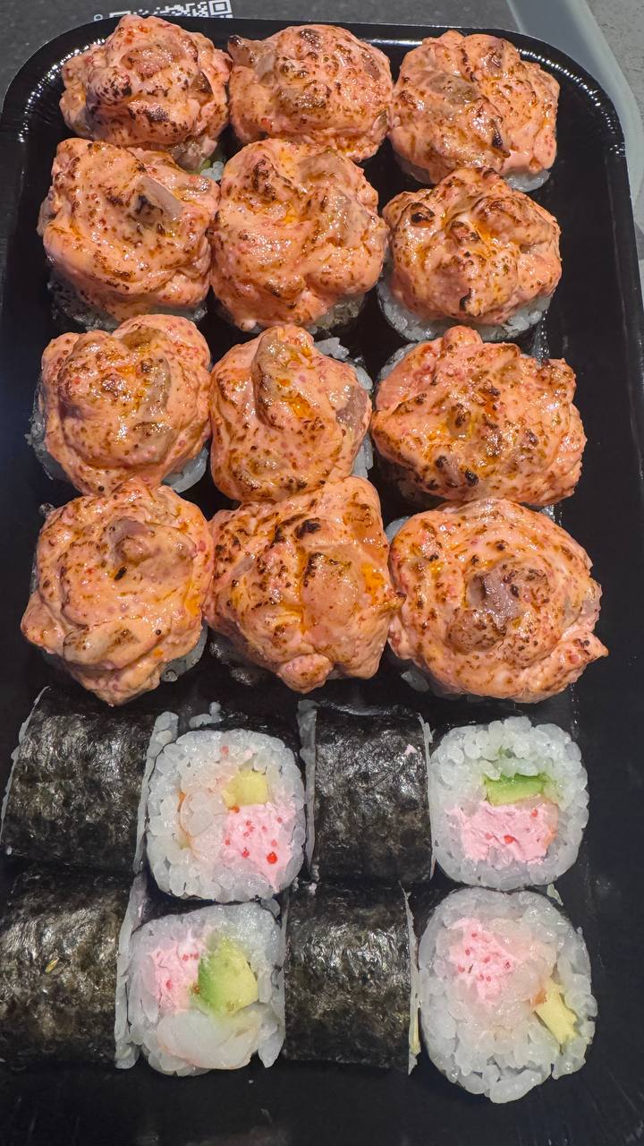 - "Висконсин🌶": креветка, сыр чеддер, пряный соус, соус сладко-ореховый, криспи - 8 шт.