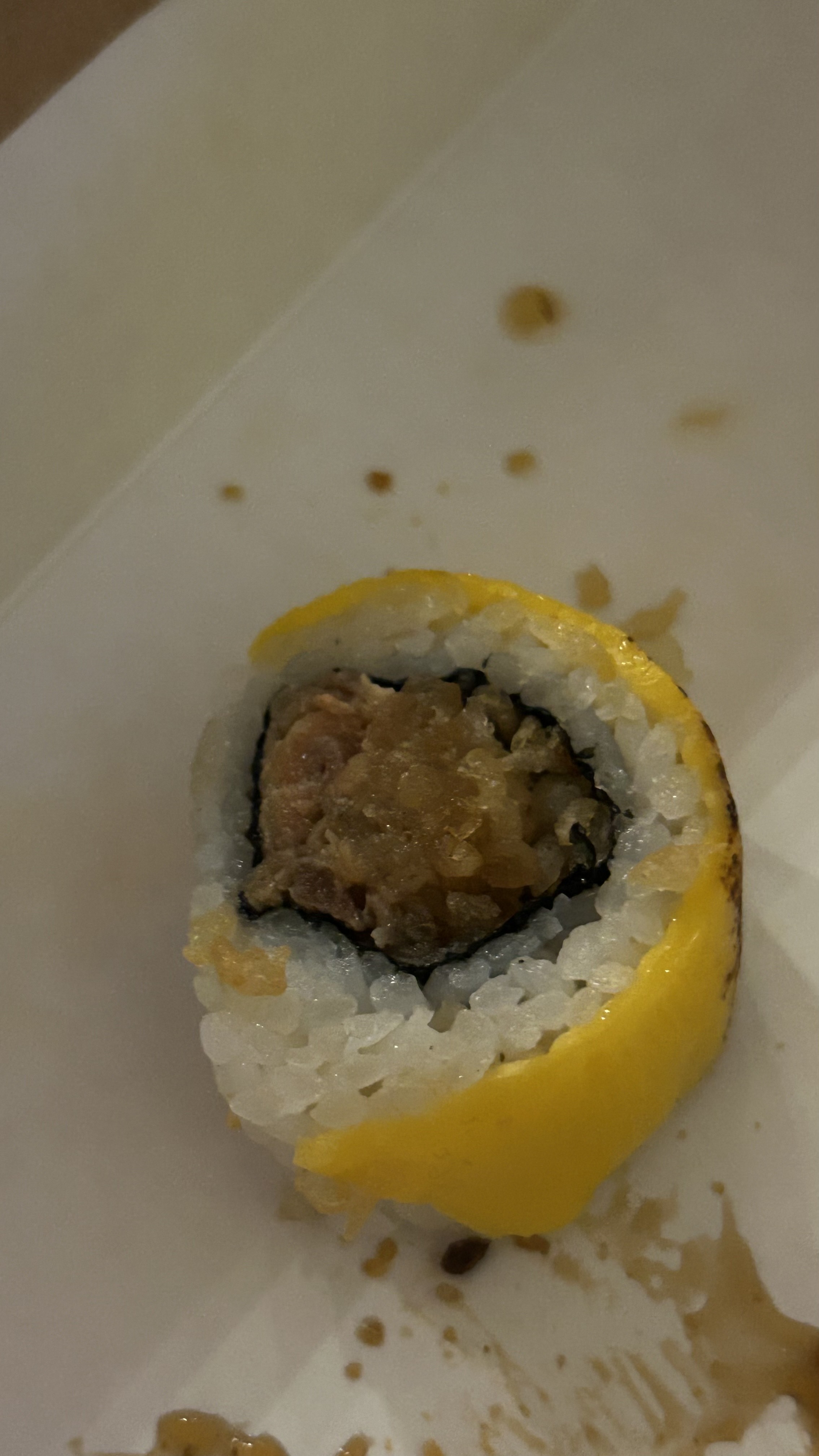- "Спайси краб 🌶": сурими, сливочный сыр, ананас, салат Айсберг, соус Терияки, острый соус - 8 шт.