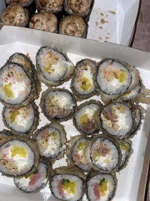 - "Магуро фрай": филе тунца, сливочный сыр, такуан, салат Айсберг, панировка - 5 шт.