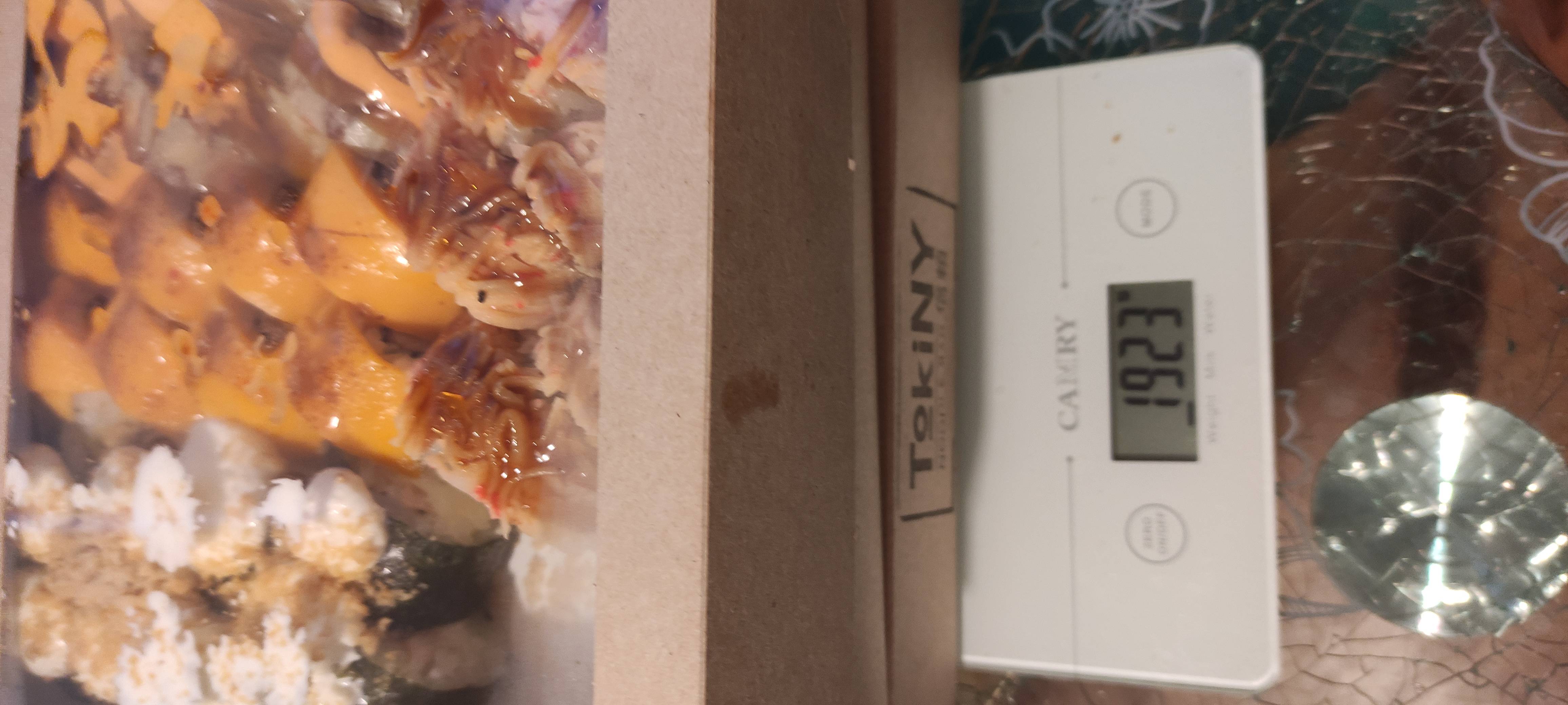- "Балтимор" (острое): филе тунца, сыр чеддер, пряный соус, криспи - 8 шт.