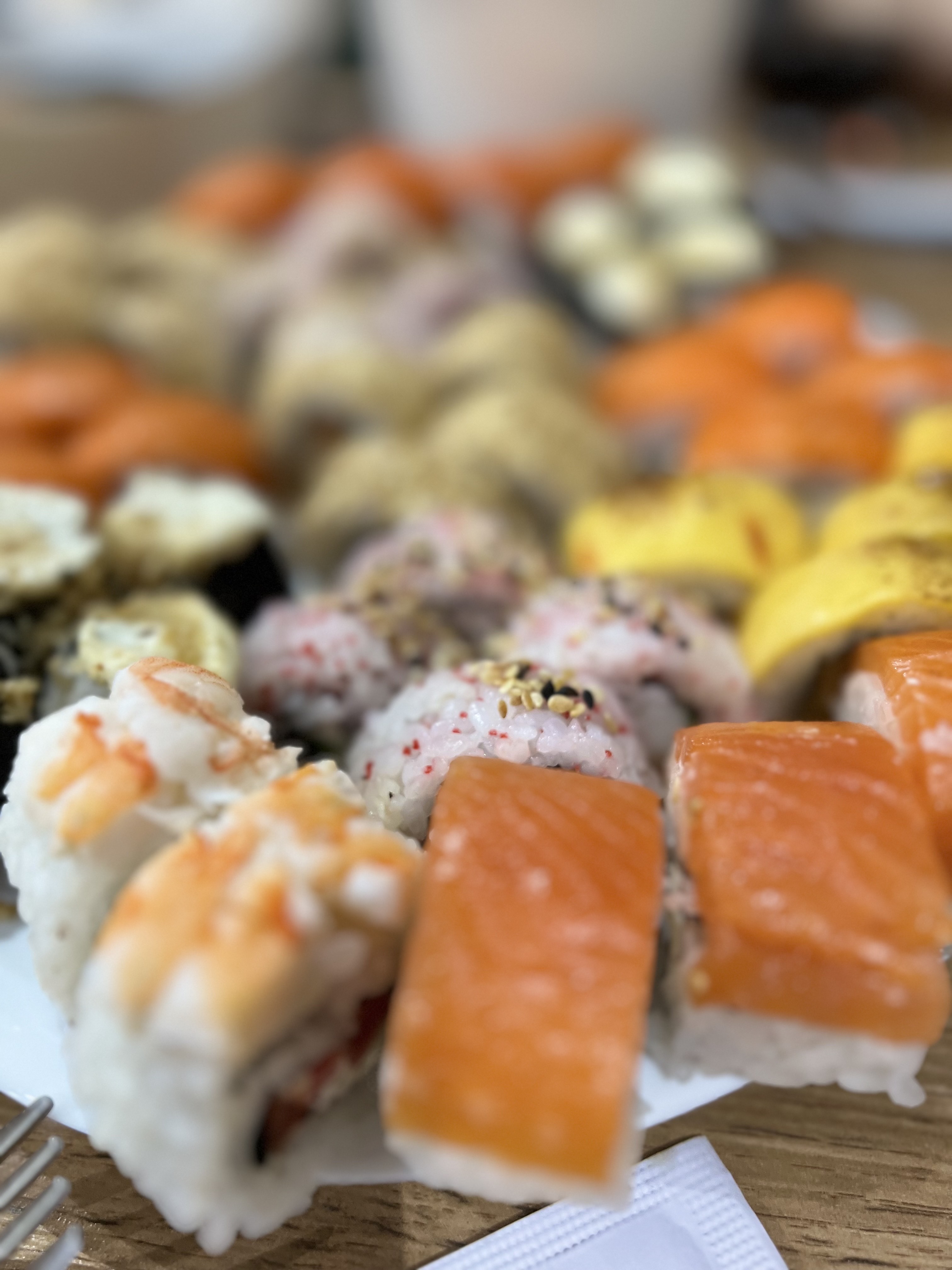 - "Манхеттен": филе лосося, сливочный сыр, авокадо, огурец, кунжут - 8 шт.
