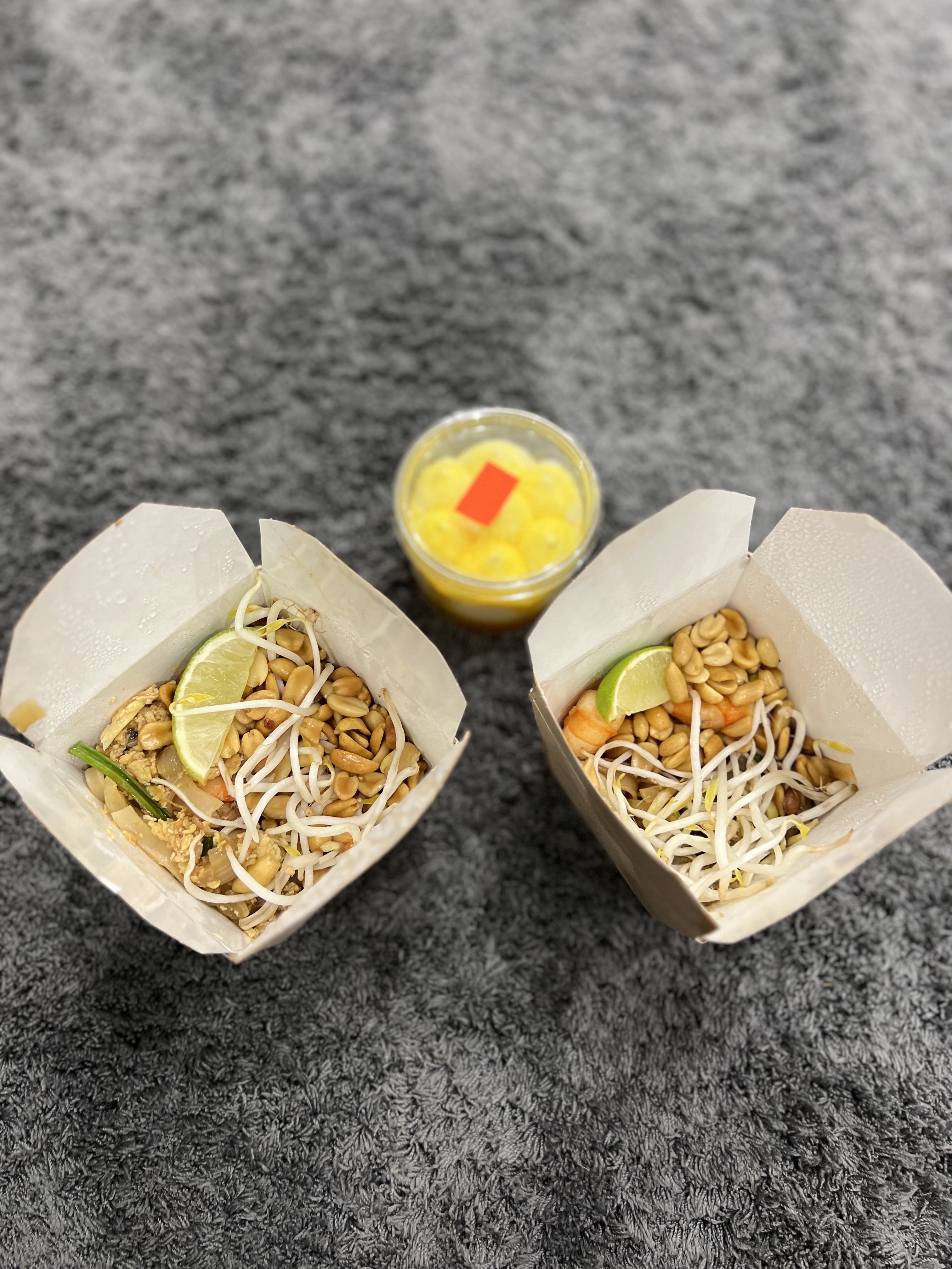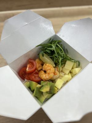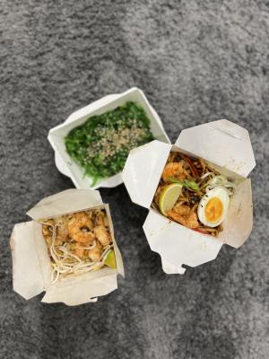 - фунчоза с тигровыми креветками (размер "М"): рисовая лапша в кисло-сладком соусе, креветка, пекинская капуста, морковь, спаржевая фасоль, сладкий перец, ананас, яйцо, кунжут, лук-порей, арахис