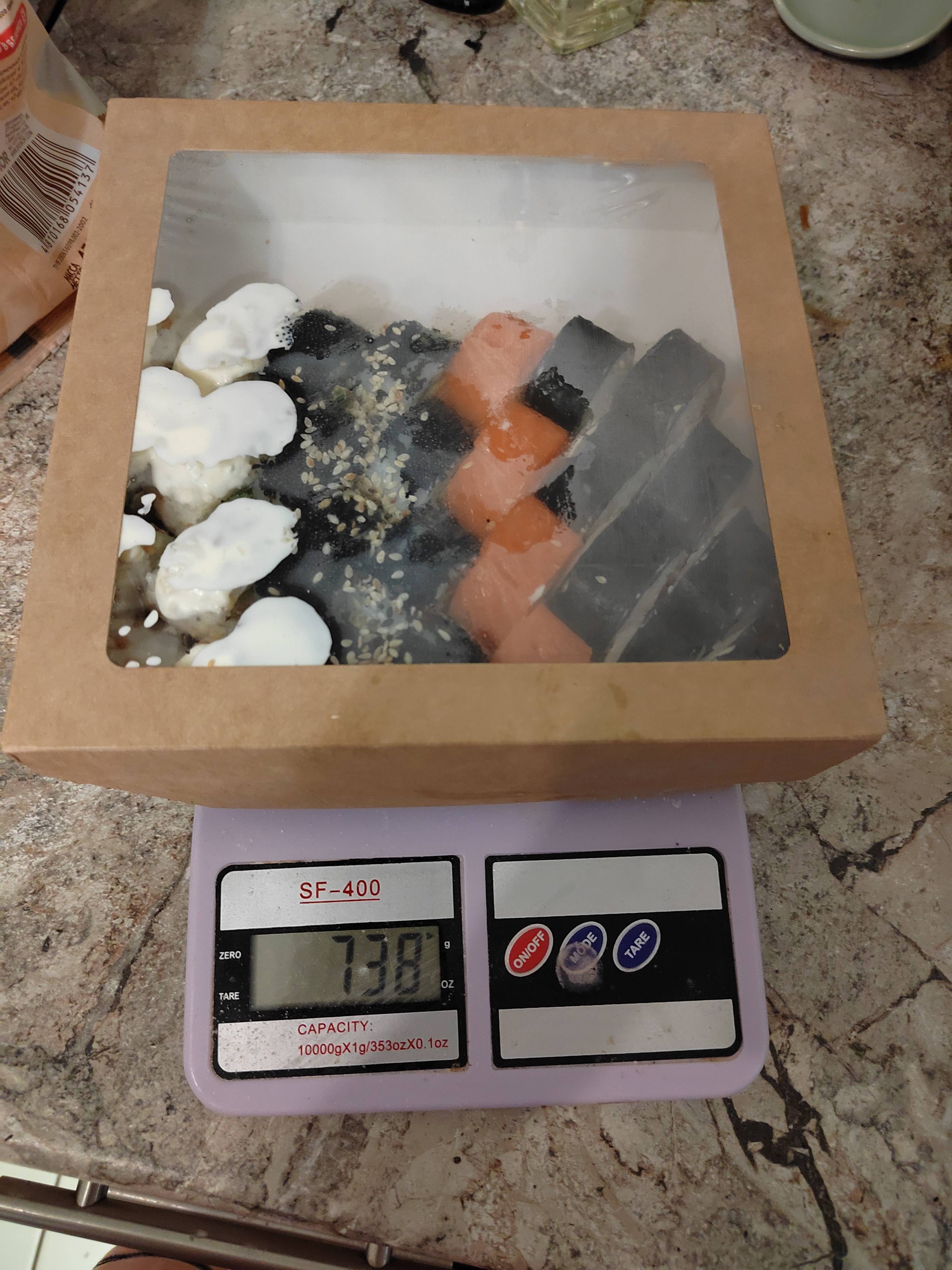 - "Детройт": цыпленок-гриль, томат, салат Айсберг, такуан, сливочный сыр, луковый мармелад, соус Лос-Анджелес и орехи кешью - 8 шт.