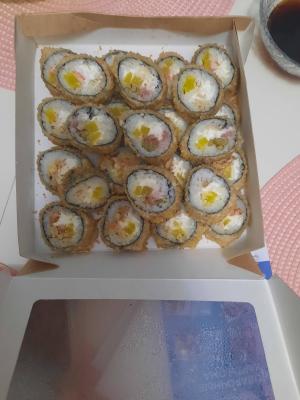 - "Аризона фрай": филе лосося, сливочный сыр, огурец, такуан, панировка - 5 шт.