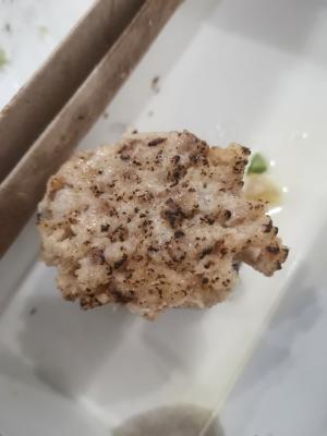- "Терияки фрай": жареный лосось, такуан, сливочный сыр, омлет Тамаго, панировка - 5 шт.