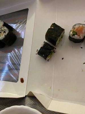 Когда открыли, запах был отвратительный, четко слышно , что что-то из продуктов было испорчено. Суши попробовали и подтвердилось, после сразу в мусорку пошли👍