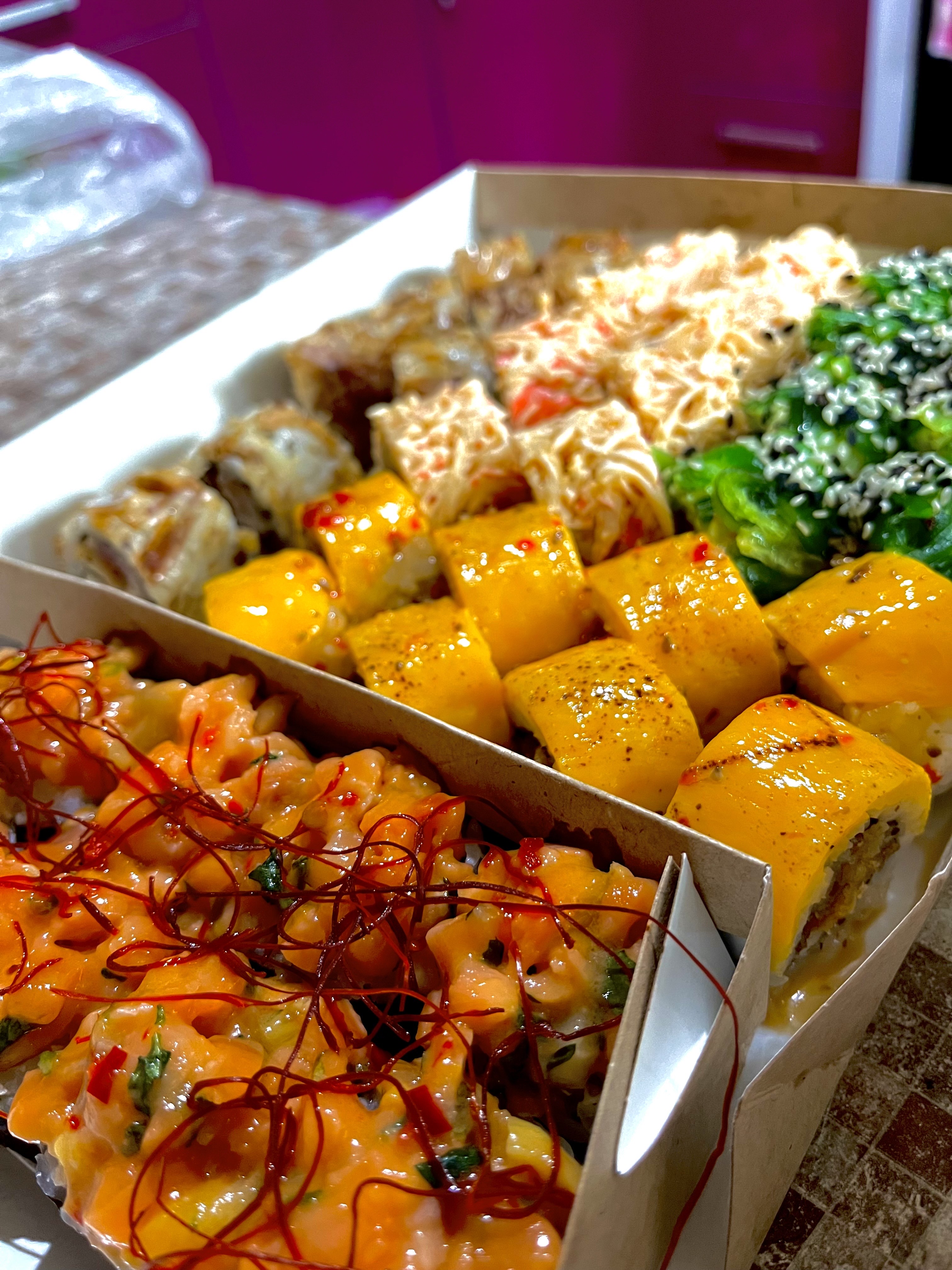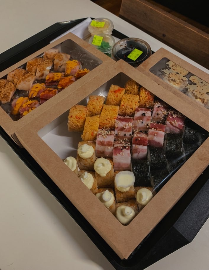 Заказывали сет «Ночной жор», к сожалению суши оказались нам не по вкусу, были очень сильно разочарованы((