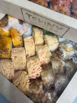 - "Бруклин с тунцом": филе тунца, сливочный сыр, омлет тамаго, томат, стружка тунца - 8 шт.