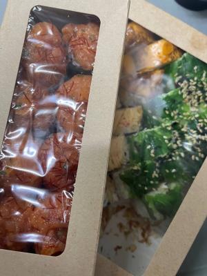 - "Цезарь": цыпленок-гриль, сливочный сыр, салат айсберг, томат, орехи кешью, сырный соус - 8 шт.