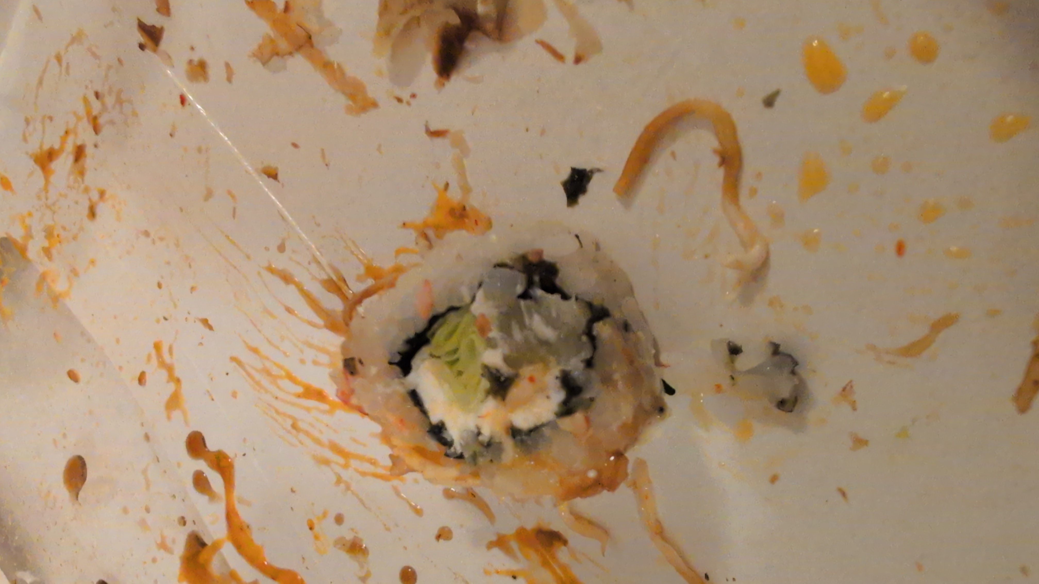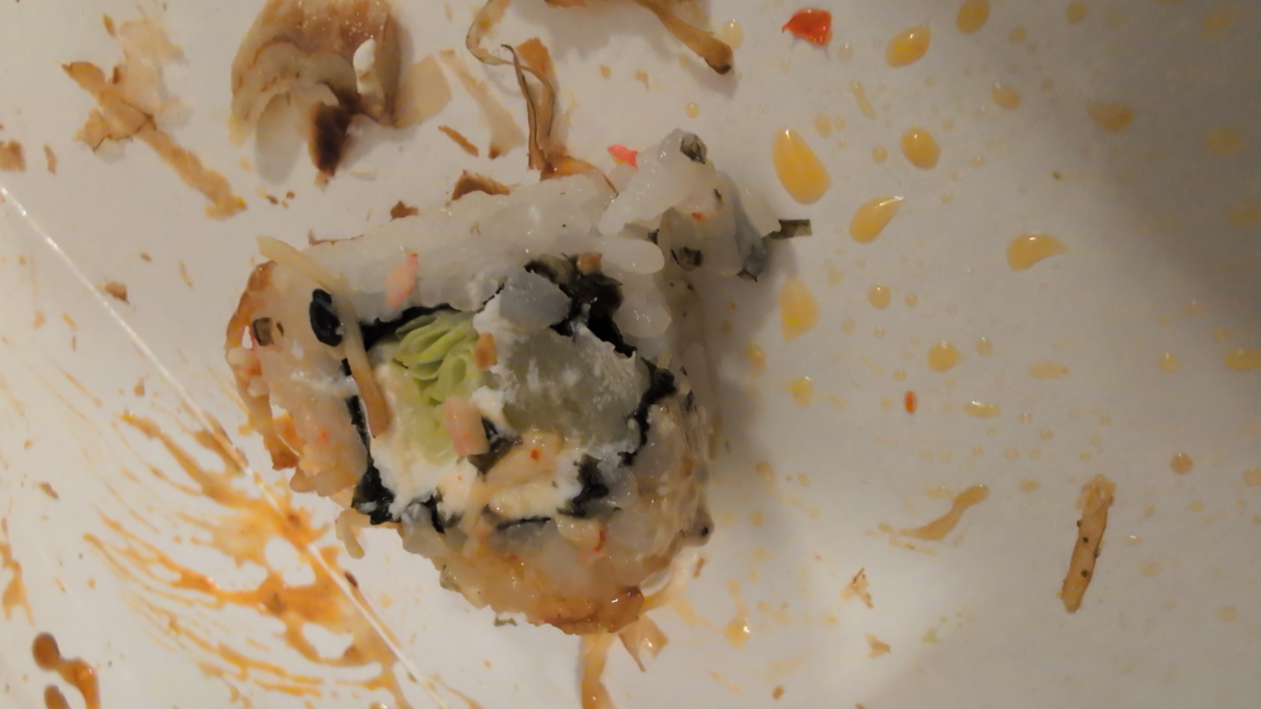 - "Детройт": цыпленок-гриль, томат, салат айсберг, такуан, сливочный сыр, луковый мармелад, соус лос-анджелес и орехи кешью - 8 шт.